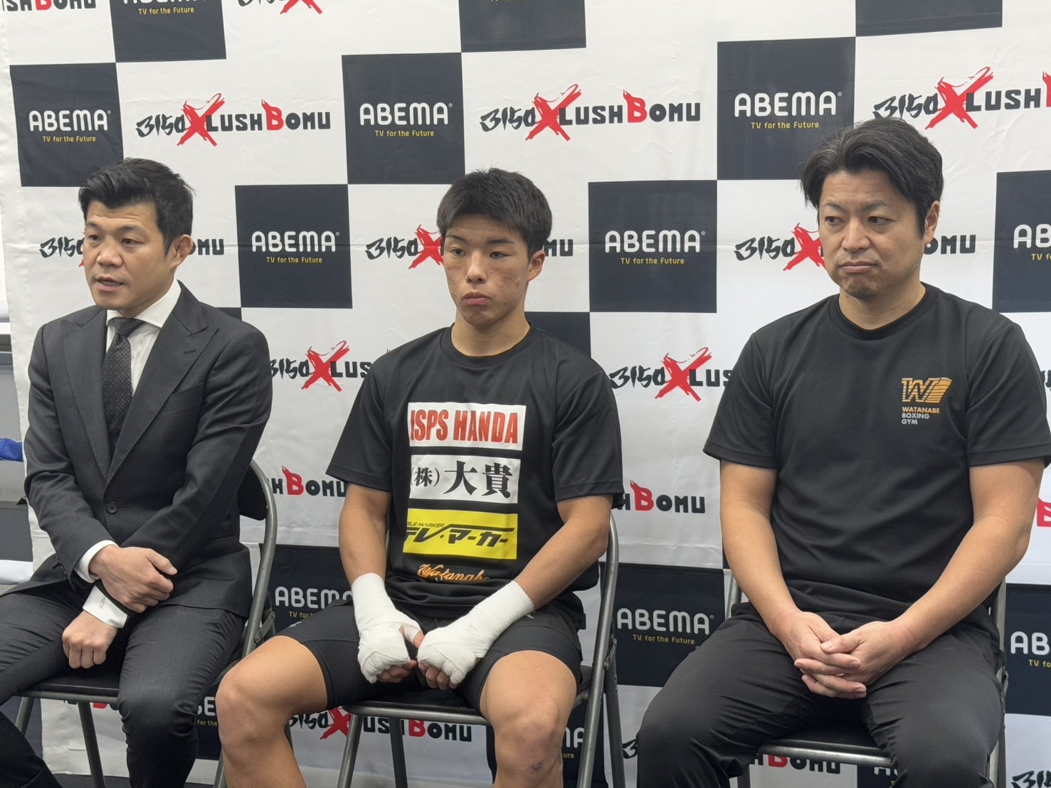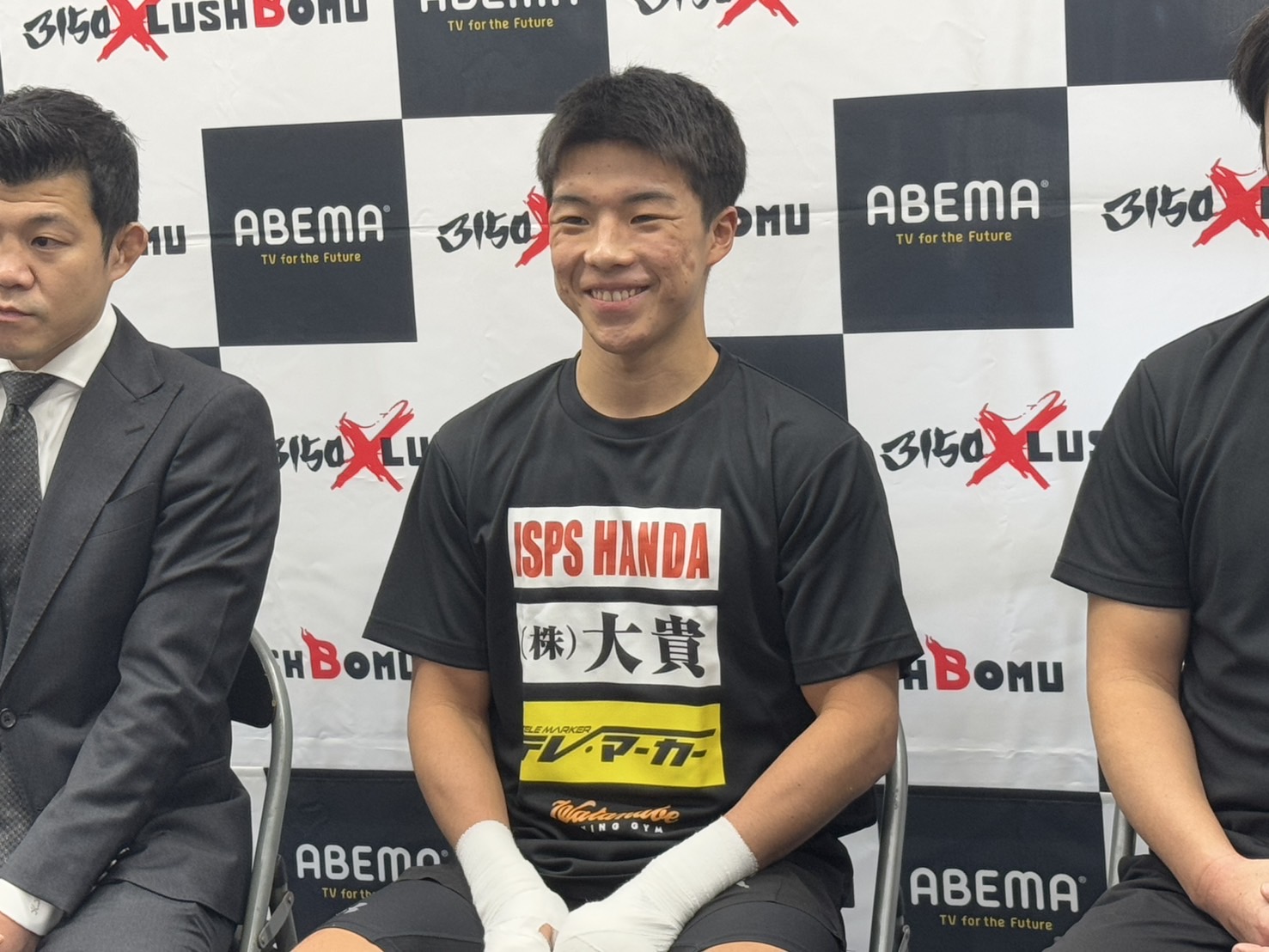 3日(火)、東京都内のワタナベジムで12月21日(土)に静岡県静岡市のツインメッセ静岡で開催する「3150×LUSHBOMU vol.3」のメインイベントに出場する横山葵海(ワタナベ)の公開練習と会見が行われた。プロ2戦目となる横山は、東洋太平洋スーパーフライ級5位のデンマーク・ケビド(フィリピン)とスーパーフライ級8回戦で対戦する。
