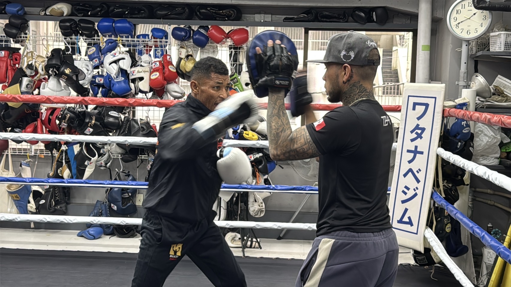 会見の後に行われた公開練習では、いきなりサンドバックを1ラウンドの間ずっと強打し続けるウォーミングアップを終えると、トレーナーと共にミット打ちを披露。スペイン語で“ボラード”と呼ばれる左右の力強いオーバーハンドを見せ、手数の多いコンビネーションを披露するなど、順調な仕上がりぶりを見せた。