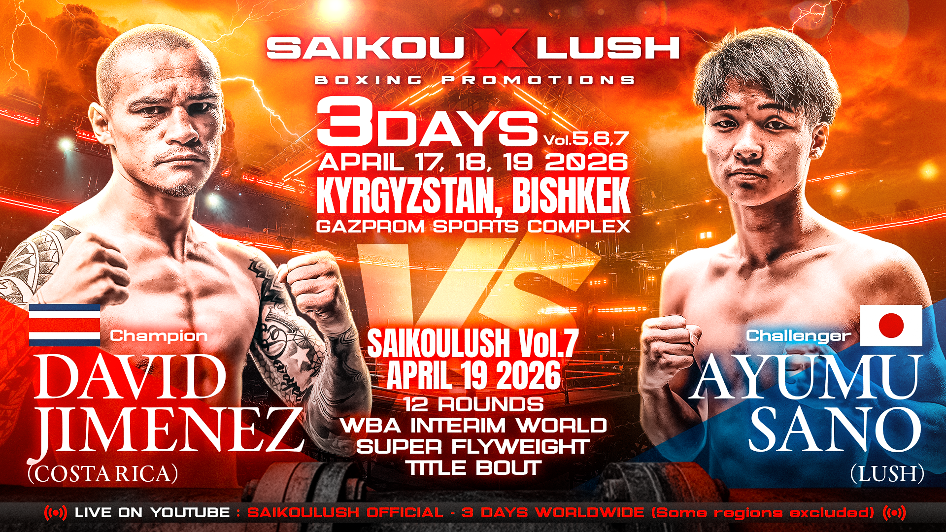 4月19日(日)にキルギスで開催される「SAIKOULUSH Vol.7」にて、WBA世界スーパーフライ級暫定王者デビッド・ヒメネス(David Jimenez・コスタリカ)に挑戦する佐野遙渉(LUSH)が、現IBF世界フライ級王者の矢吹正道を相手に“豪華スパーリング”を敢行し“世界”王座奪取へ向けて並々ならぬ決意を語った。