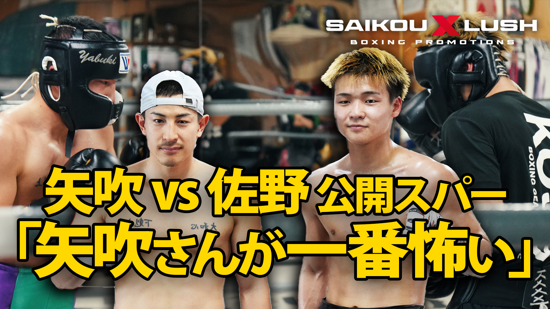 佐野は普段から矢吹とはスパーリングを行う言わば“師弟関係”の中だが、「矢吹さんとのスパーが一番怖い」と吐露するほど矢吹に対して畏敬の念を抱いており、軽量級離れした破壊力抜群のパンチを持つ矢吹正道とのスパーリングは、実戦さながらの極限の緊張感の中で行われた。
